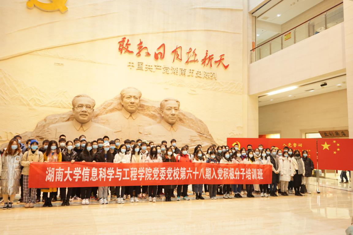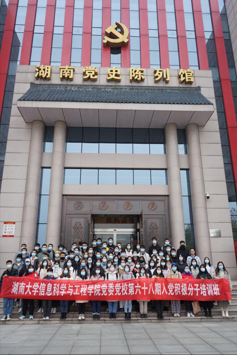 第六十八期入党积极分子培训班全体学员,乘坐大巴前往雷锋纪念馆、湖南省党史陈列馆参观学习。本次带领同学们参观的是信科院学生学生党建兼干张雅静老师。