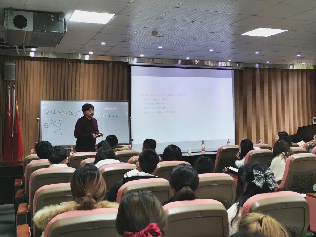 624会议室进行了第一次授课。他首先介绍了后续阶段的所有课程安排和计算复杂性理论的概述,讲述了四大问题:丢番图问题、匹配问题、顶点覆盖问题、图同构问题,并对它们一一进行了详细的解释和具体的分析,傅教授从宏观角度概况了什么是计算理论,什么问题可以用计算理论解决、怎么解决问题以及如何有效地解决问题,给大家介绍了一些理论研究中的主要技巧。最后傅教授告诉同学们在本次课程中大家将接触到计算机科学中的许多伟大思想。
