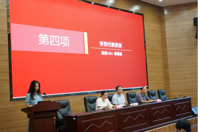 最后由通信1901班的姜璐涵同学作为学生代表发言,她表示将认真上好每一堂课,深入了解党的光辉历史与先进思想,以合格党员的标准严格要求自己,高举中国特色社会主义伟大旗帜,将社会主义核心价值观铭记于心,以最饱满的热忱与最昂扬的姿态完成本次培训活动,交出一份满意的答卷。