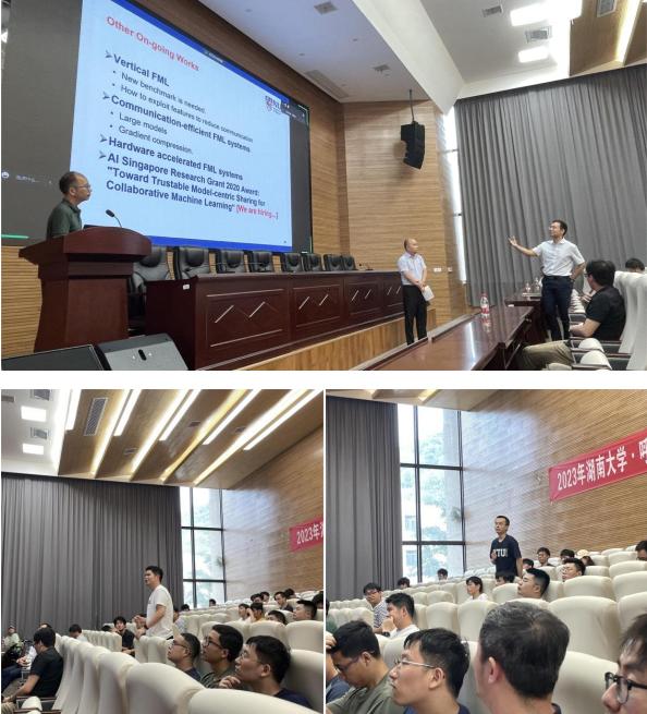 201报告厅分别展开了题为《联邦学习系统:数据孤岛上的有效和高效机器学习系统》和《基于CPU和GPU加速的高效机器学习系统》的学术讲座。讲座由副院长蒋洪波教授主持,第一会所