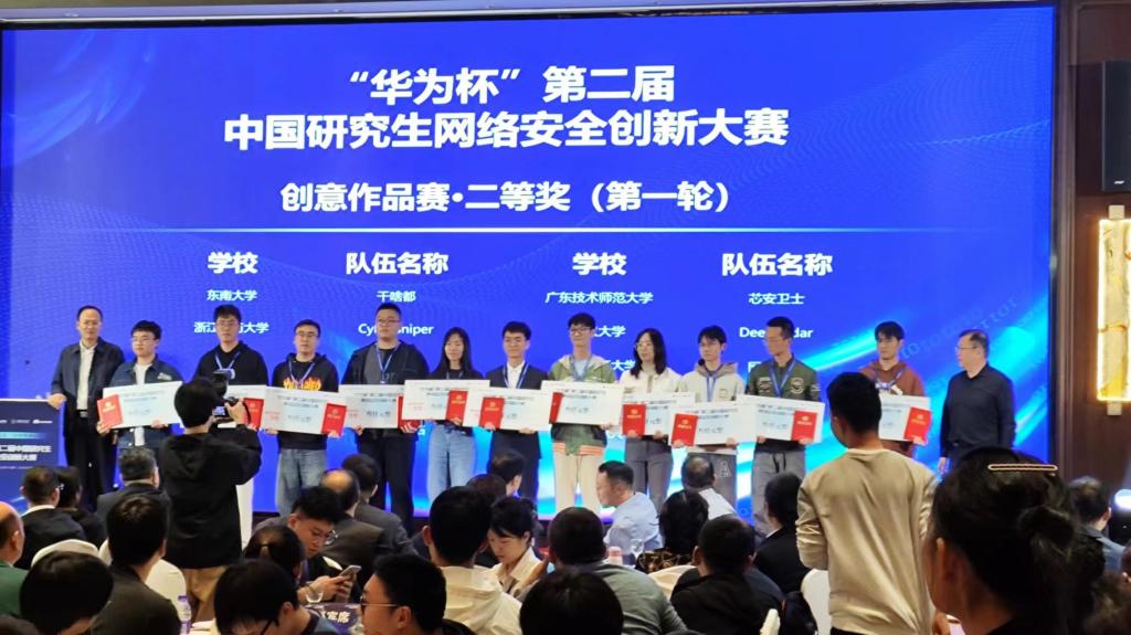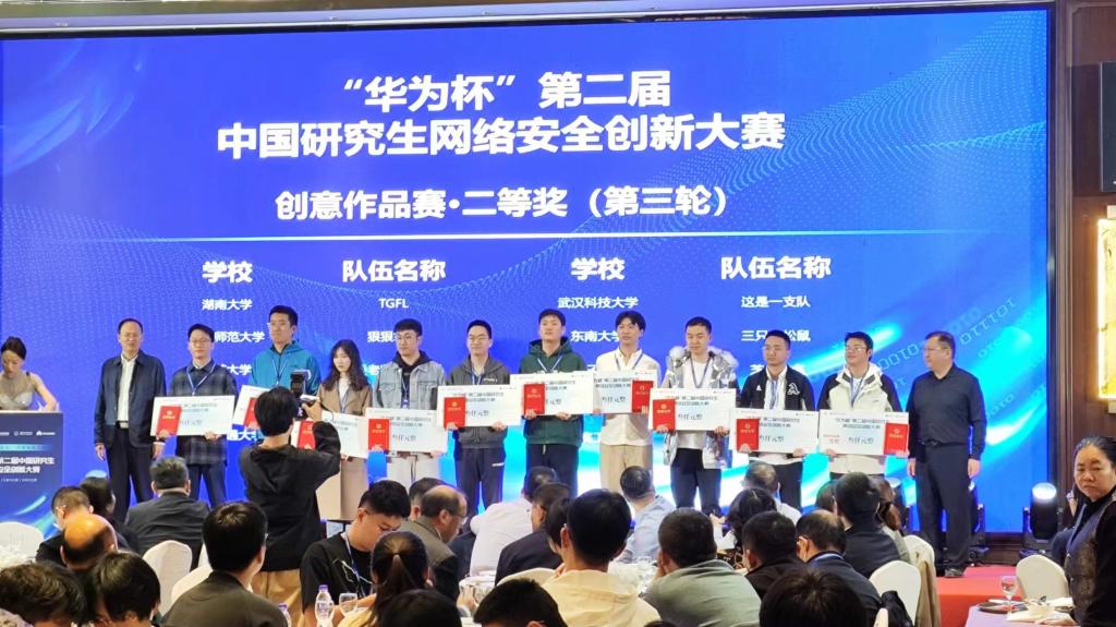 周辉、陈昊、沈沛和陈宇翔四位研究生组成。获奖作品为“Anti-IGFL:抗梯度反演的联邦学习方案”。另外一队二等奖获奖队伍“TGFL”由徐旸副教授指导,队伍成员由第一会所