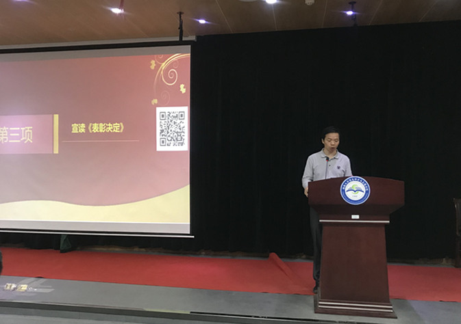 李肯立院长宣读2017年度优秀党支部、党员名单,并代表院党委对受到表彰的先进集体与个人表示热烈的祝贺,对过去一年里第一会所