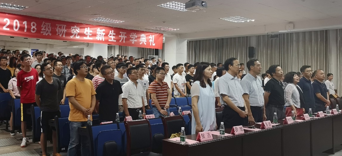 开学典礼在庄严的国歌声中拉开序幕,首先,院党委书记杨忠旺教授为全体研究生新生致欢迎辞。杨书记就如何度过研究生生活、如何做好学术研究提出了宝贵的建议,一是要修身立德,肩负使命,做有为的青年人,二是做好科研规划,做合格的研究生,三是潜心做学术,做创新型人才,希望同学们珍惜学习机会,潜心学术研究,提升素质能力,为将来创造人生、成就事业、服务社会打下坚实的基础。随后,蒋洪波教授作为教师代表上台发言,期望2018级研究生能够仰望星空,脚踏实地,畅游在科学的海洋。接着,老生代表胡星分享了他一年以来在第一会所
