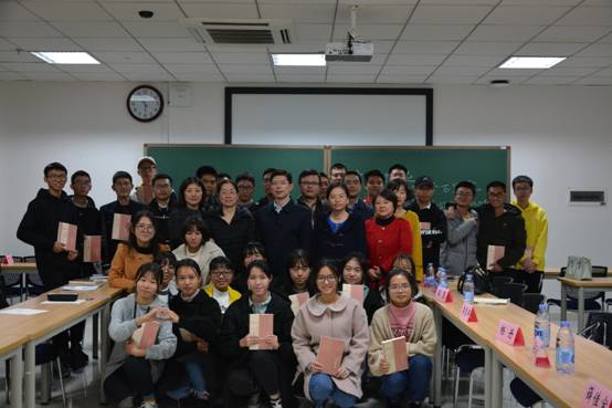 见面会接近尾声,老师们为同学们送上了精心准备的礼物——《谢觉哉家书》,希望同学们作为工科生,仍能保持对书籍的热爱。李勇军老师强调,希望每一位同学都能够培养自己的兴趣爱好,积极锻炼身体,练就一项体育技能,广交朋友并拥有贴心朋友。