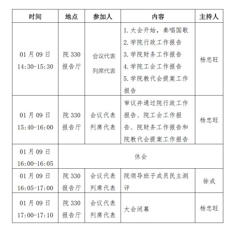 第二届五次教职工、工会会员代表大会将于2019年1月9日举行,会议相关事项如下: