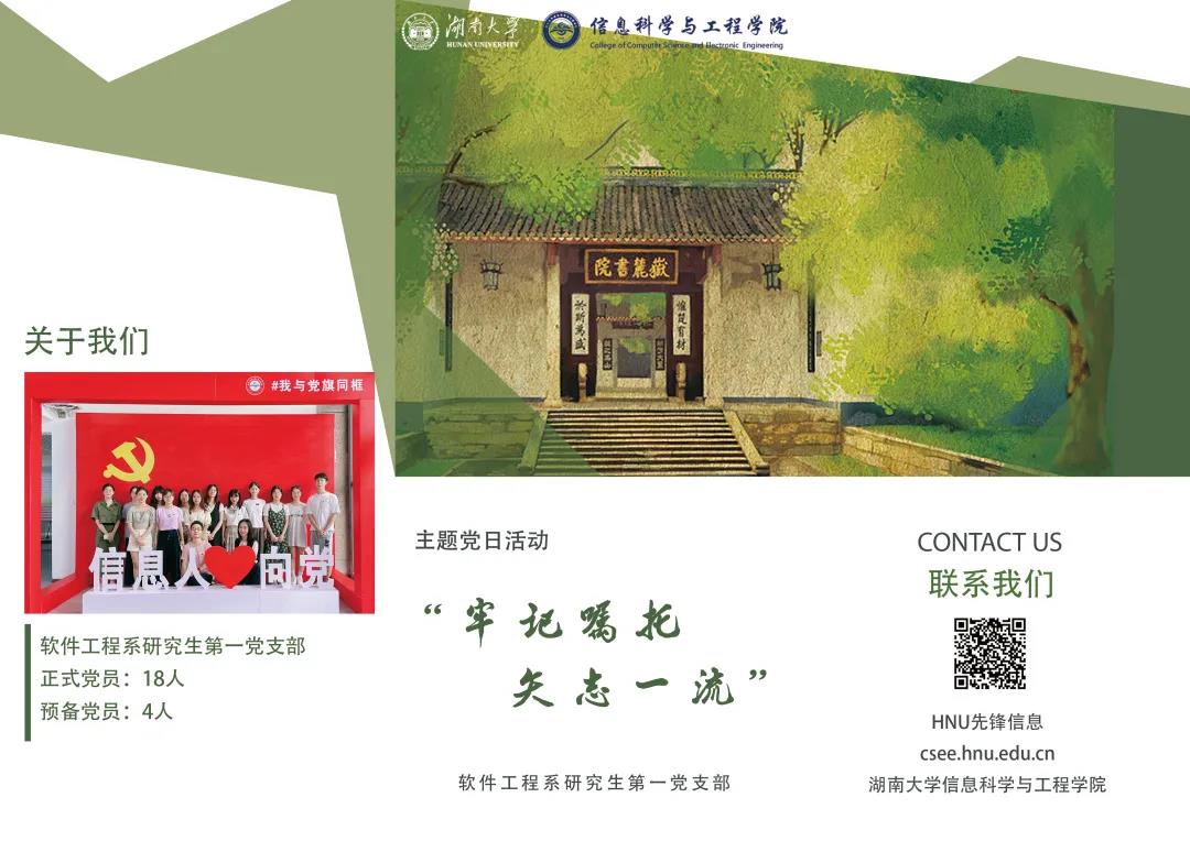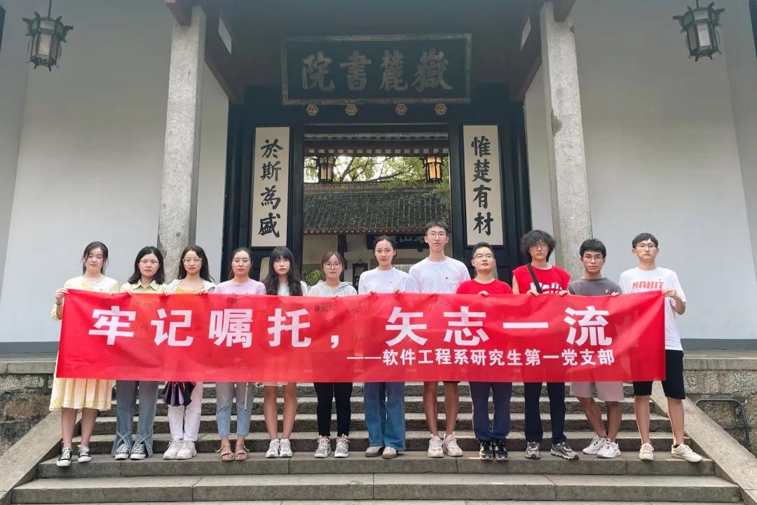 软件工程系研究生第一党支部开展“牢记嘱托,矢志一流”主题党日活动。支部党员从实事求是思想路线策源地岳麓书院出发,通过“在麓上”牢记领袖嘱托、“志高远”传承第一会所