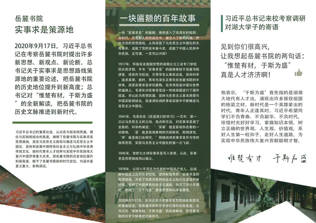 以岳麓书院为起点,支部书记金灿灿带领支部党员重走考察路,引导大家认识传承弘扬优秀历史文化的重大意义和深刻内涵。此外,支部还制作了“实事求是思想路线策源地”重要论述宣传手册,支部全体党员化作志愿者,为游客讲述岳麓书院的这座千年学府迸发出来的红色思想,将一块“实事求是”匾额的百年故事和习近平总书记的考察故事向群众娓娓道来。