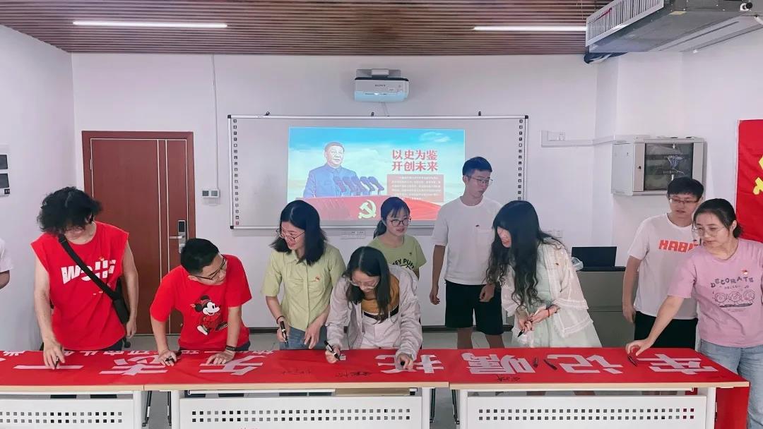 在交流会上全体成员畅所欲言,直抒胸臆,纷纷在明信片上写下自己的“青春宣言”,表达自己牢记嘱托,追求卓越的感慨。此外,全体党员还在活动横幅上签名,留下自己的青春印记。