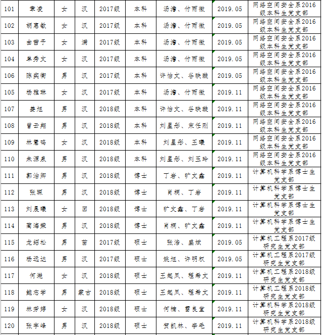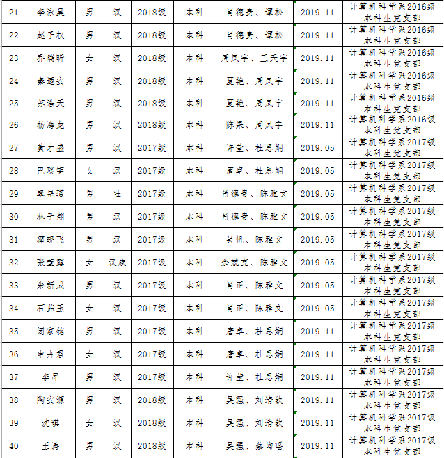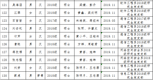 校党委2019年初划拨给第一会所 的2019年发展党员计划控制数,第一会所 2019年可发展学生党员130人。经第一会所 党委充分讨论,将各年级、各专业计划控制数下拨至各党支部,由党支部充分酝酿、讨论和支部会议通过,确定发展对象人选。经党委会讨论,确定130名同志为2019年发展对象,纳入年度党员发展计划,现具体名单公示如下: