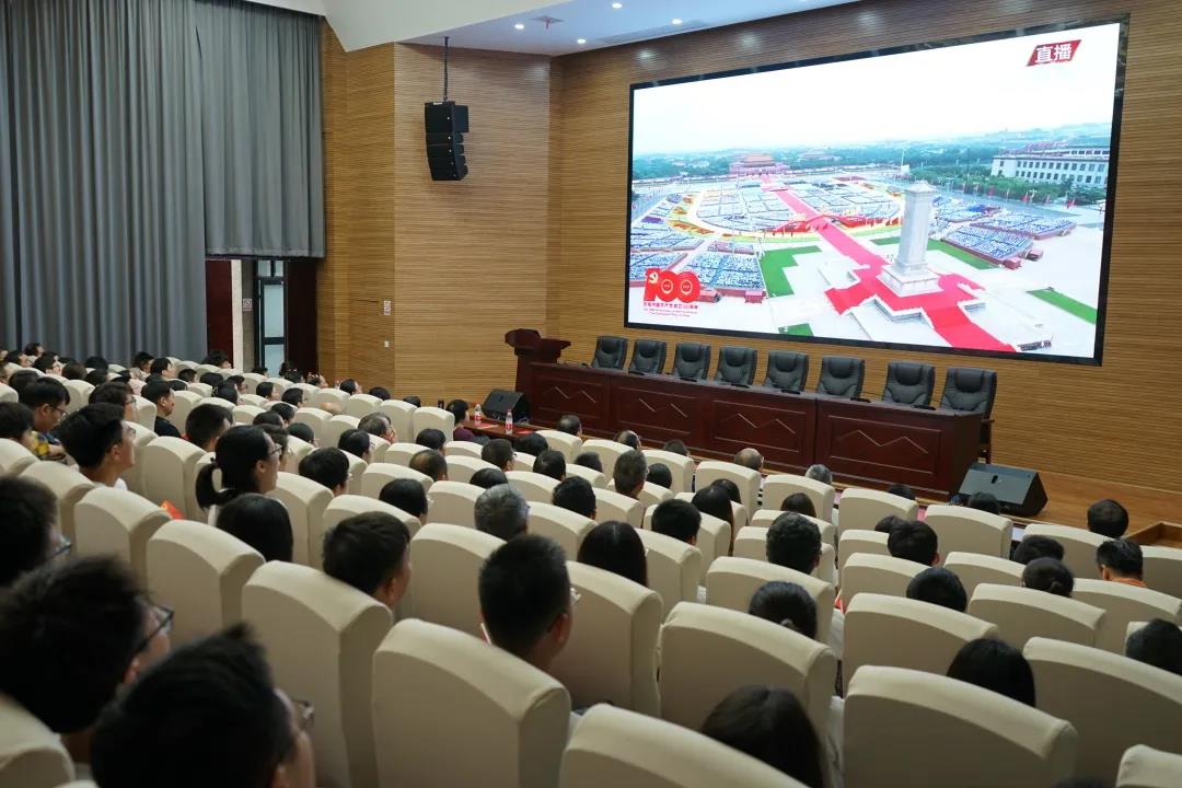 师生党员齐聚201、401报告厅,集中收看庆祝中国共产党成立100周年大会直播,向党送上诚挚的生日祝福。礼炮百响、齐步阵阵,青春誓言、强国有我,在场师生备受鼓舞、倍感振奋。