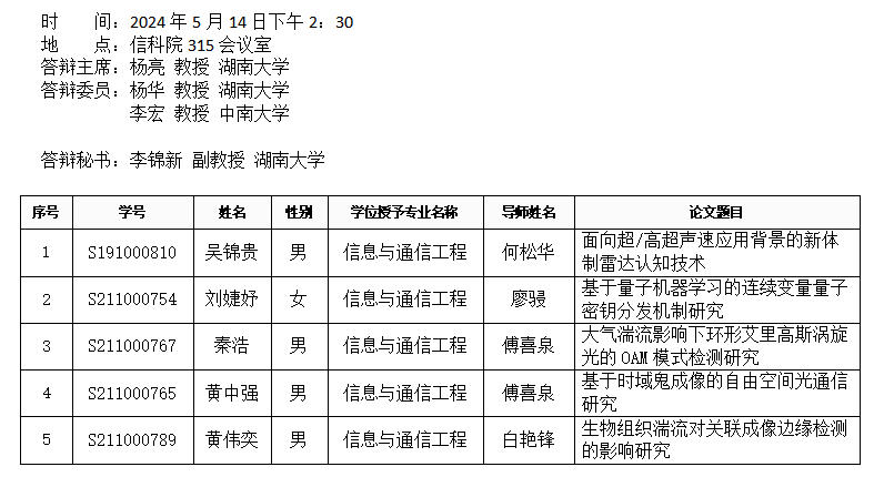 第一会所 (通信系)2024年5月11日硕士答辩公告
