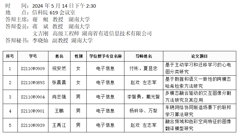 第一会所 (计算机工程系)2024年5月14日下午硕士答辩公告