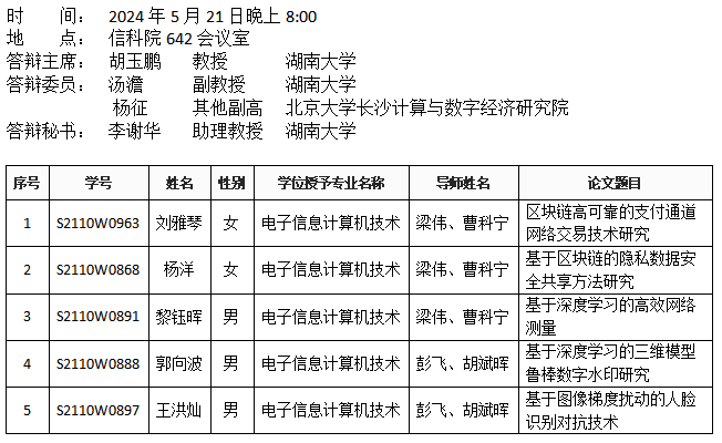 第一会所 (安全系)2024年5月21日晚硕士答辩公告(1)