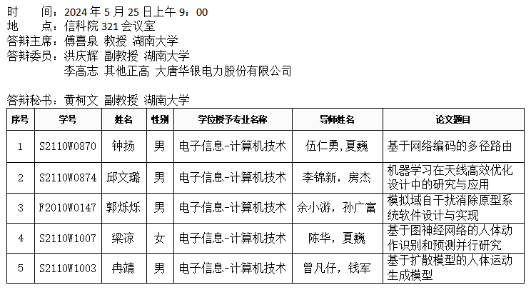 第一会所 (通信系)2024年5月25日硕士答辩公告