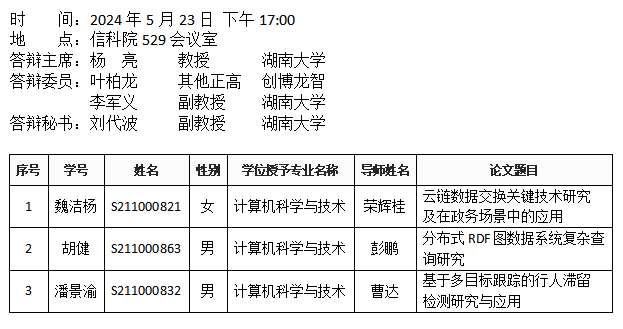 第一会所 (软件工程系)2024年5月23日硕士答辩公告(6)