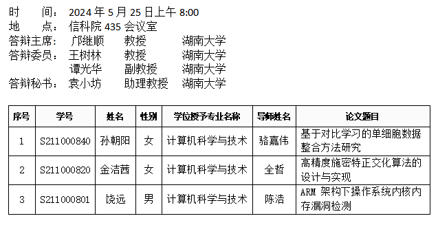 第一会所 (计算机科学系)2024年5月25日硕士答辩公告(2)