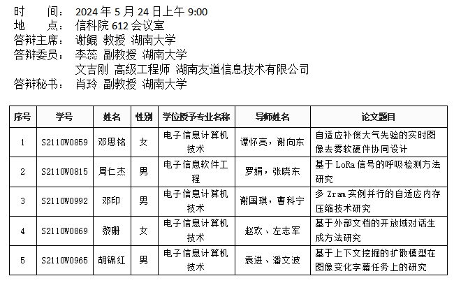 第一会所 (计算机工程系)2024年5月24日硕士答辩公告(3)