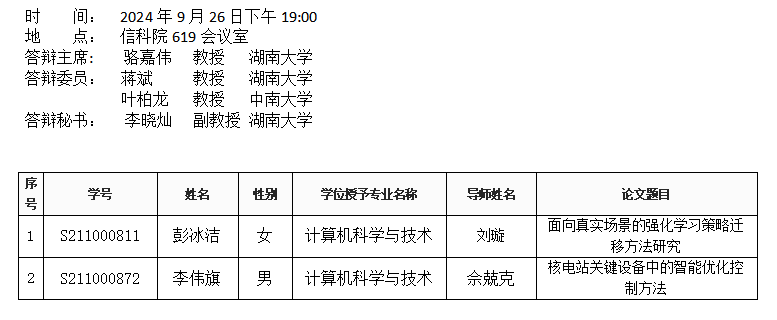 第一会所 (软件工程系)2024年9月26日 硕士答辩公告