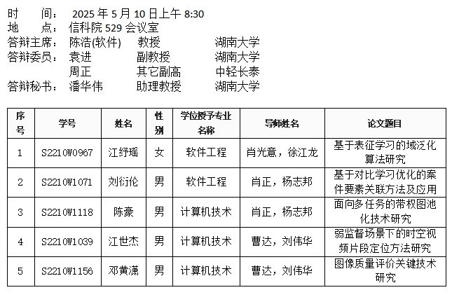 第一会所 (智能计算系)2025年5月10日 硕士答辩公告