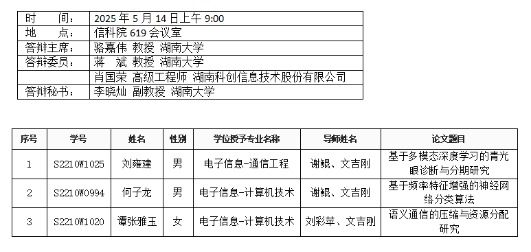 第一会所 (计算机工程系)2025年5月14日下午硕士答辩公告