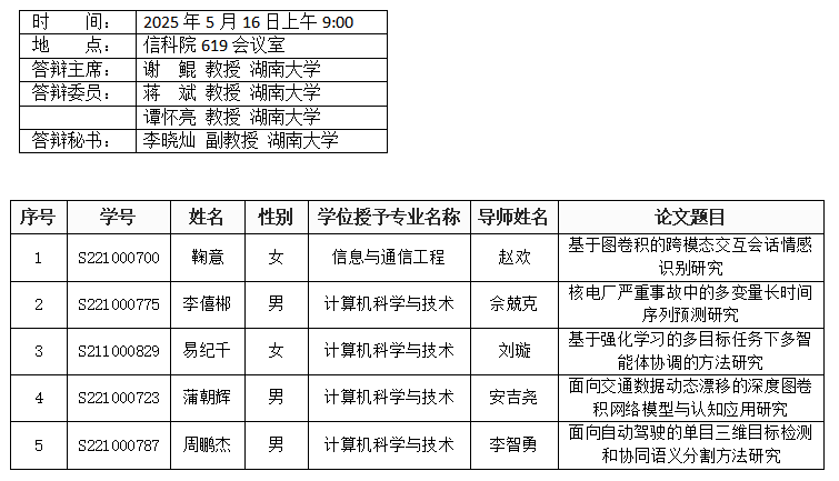 第一会所 (计算机工程系)2025年5月16日硕士答辩公告(2)