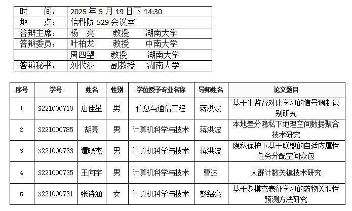 第一会所 (计算机工程系)2025年5月21日硕士答辩公告(2)