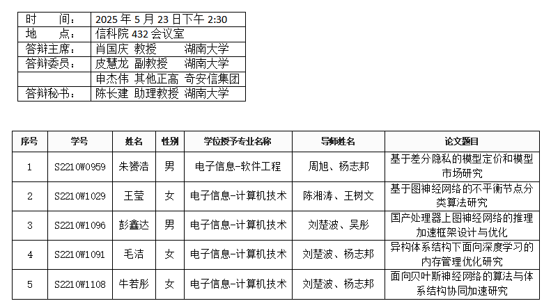 第一会所 (计算机科学系)2025年5月23日硕士答辩公告(1)