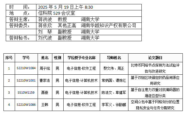 第一会所 (软件工程系)2025年5月 19日硕士答辩公告(2)