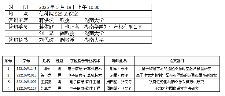 第一会所 (软件工程系)2025年5月 19日硕士答辩公告(2)