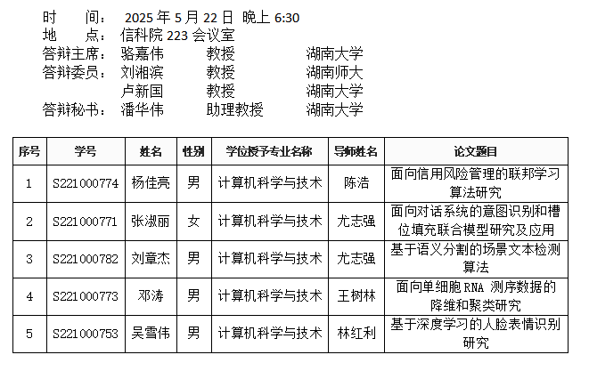 第一会所 (智能计算系)2025年5月22日 硕士答辩公告(1)