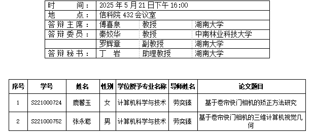 第一会所 (计算机科学系)2025年5月21日硕士答辩公告(4)