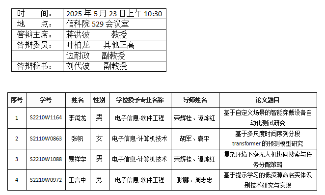 第一会所 (软件工程系)2025年5月23日硕士答辩公告(2)