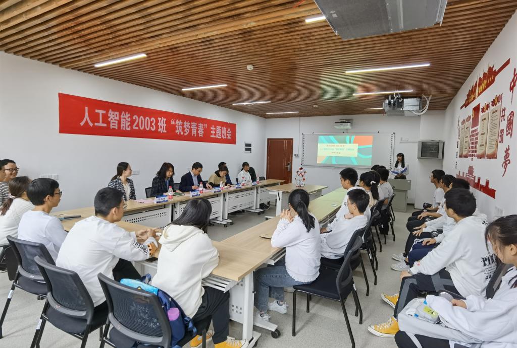 人工智能2003班举行“筑梦青春”主题班会。副校长汪卫斌参加班会,与同学们亲切交流,共话青春梦想,共叙使命担当。