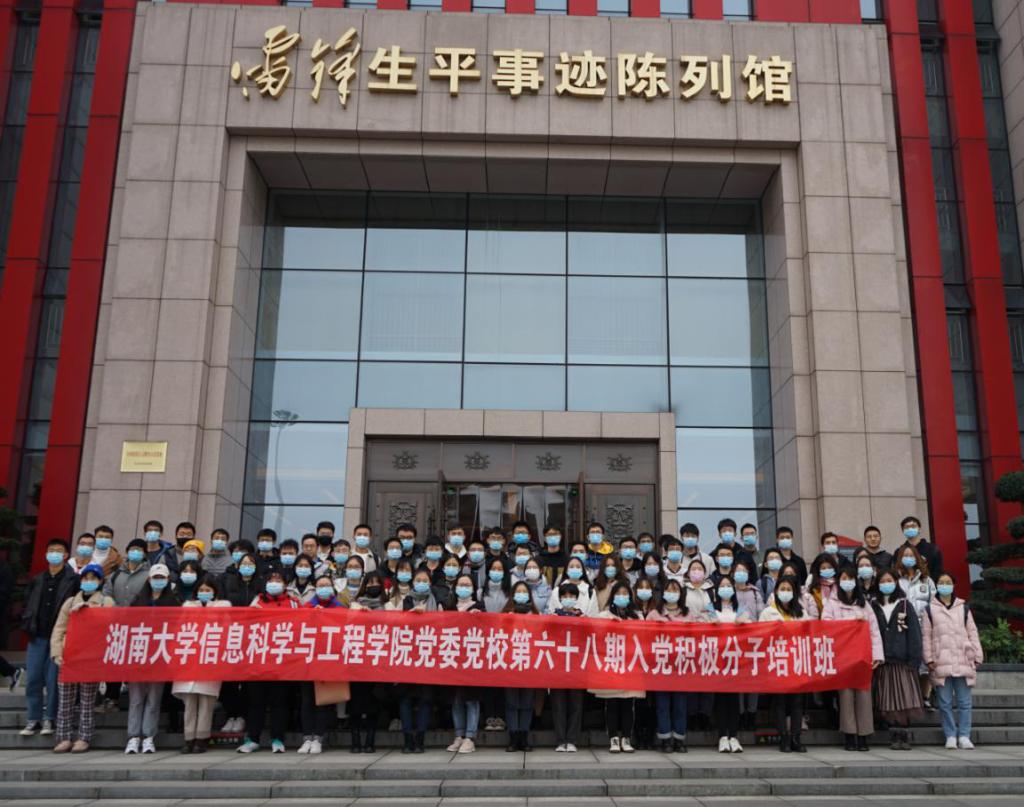 第六十八期入党积极分子培训班全体学员,乘坐大巴前往雷锋纪念馆、湖南省党史陈列馆参观学习。本次带领同学们参观的是信科院学生学生党建兼干张雅静老师。