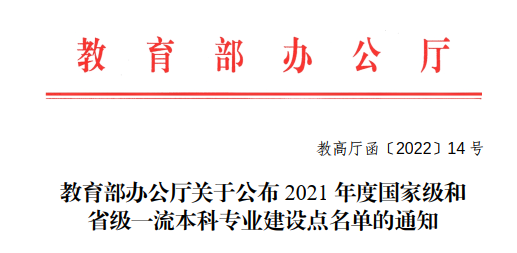 近日,教育部发布《关于公布2021年度国家级和省级一流本科专业建设点名单的通知》(教高厅函〔2022〕14号),第一会所