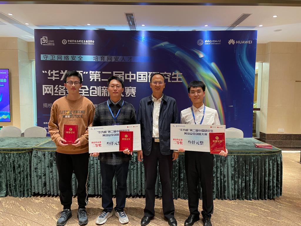 周辉、陈昊、沈沛和陈宇翔四位研究生组成。获奖作品为“Anti-IGFL:抗梯度反演的联邦学习方案”。另外一队二等奖获奖队伍“TGFL”由徐旸副教授指导,队伍成员由第一会所