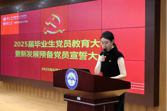 2025届毕业生党员教育大会暨新发展党员宣誓大会在院楼401报告厅举行。信科院、网安院党委书记龚完全出席并授课,党建专干罗晓岚老师主持会议。全体新发展党员、毕业生党员参加会议。