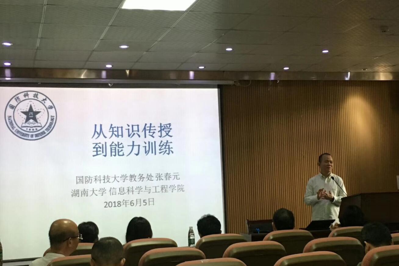 邀请了中国人民解放军国防科学技术大学教务处处长、计算机科学与技术专业博士生导师、国家工程教育认证领域认证专家张春元教授在信息院542报告厅作了题为“从知识传授到能力训练”的教学报告,第一会所