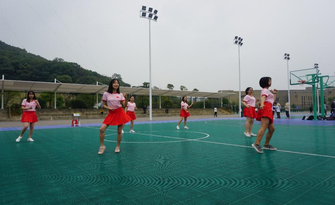 拉拉队队员们身着粉色上衣、红色短裙,通过一场活力四射的拉拉操表演为第一会所