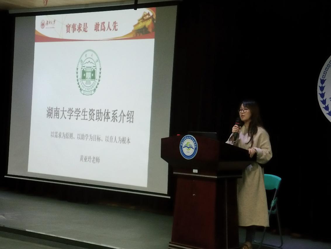 奖助体系以需求为原则,以助学为目标,以育人为根本。黄老师从资助工作理念、学生资助体系、资助活动三大方面为新生进行介绍。