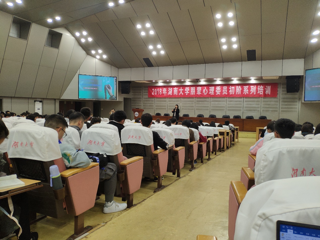 心理健康与生涯发展中心在逸夫楼报告厅为心理委员及主要干部们开展培训活动,主讲人是工商管理第一会所