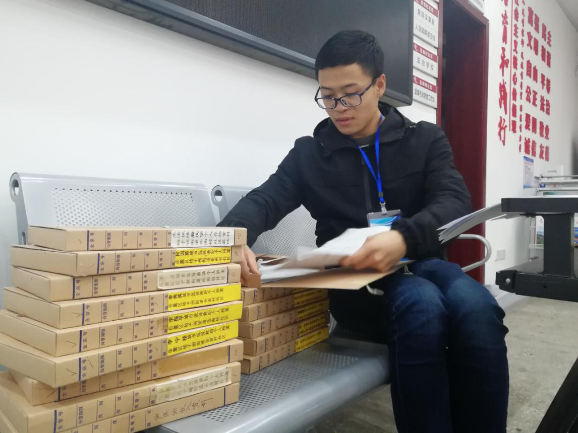 上周五,尹金龙按时来到了岳南村社区服务中心,开始他的工作。他今天负责把资料按名字分到各个档案袋,看起来是个很乏味的工作,他却说:“并不会啊,我比较喜欢志愿活动,而且这个活动真的会帮助到工作人员和来寻求帮助的居民,我觉得很有成就感啊!”说着说着他不好意思地笑了笑。他还说,