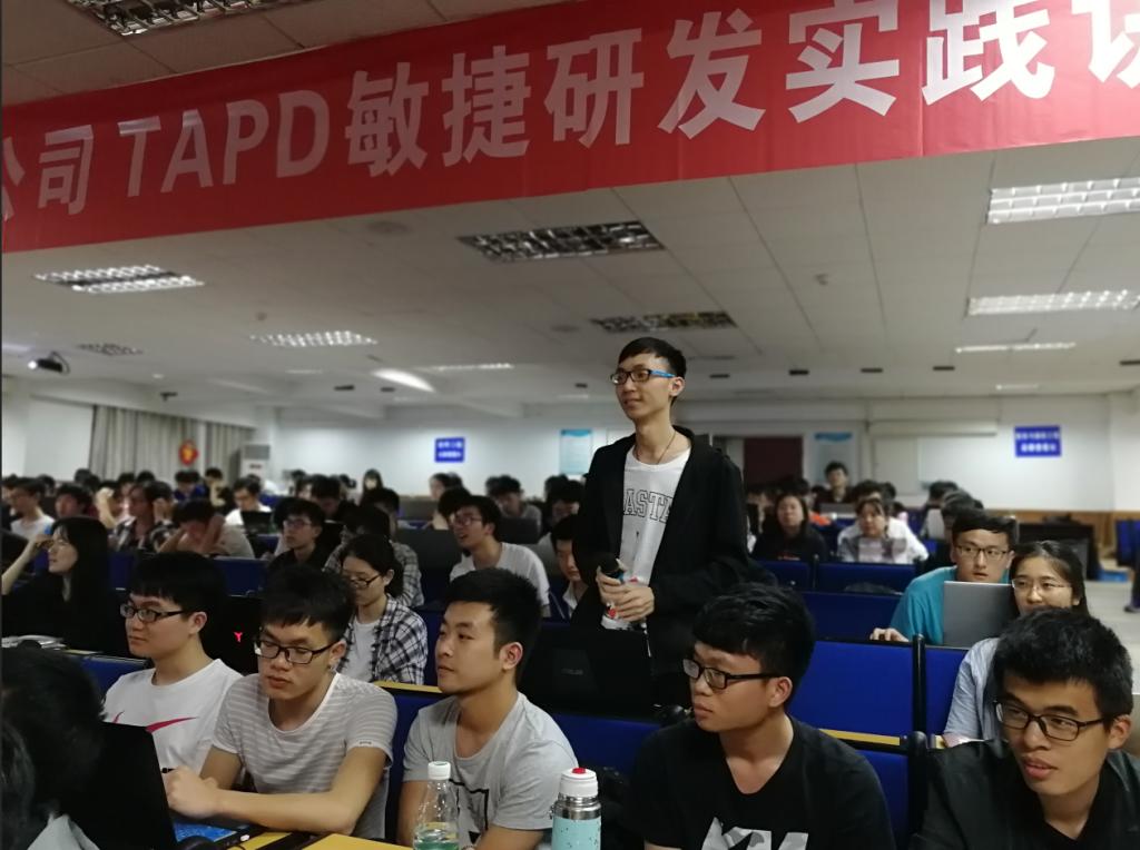 在最后的提问交流环节中,同学们提问非常踊跃,与两位嘉宾和老师进行了长达40分钟的互动交流。参加讲座的同学们纷纷表示受益匪浅,不仅得到了软件开发方法的专业性和实用性技术指导,也更多了解到腾讯的第一会所和研发文化,为以后学习、实习和就业等方面起到非常好的指引作用。刘阳先生最后表示,以后腾讯TAPD部门会考虑和第一会所