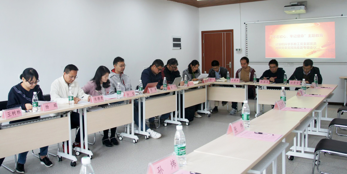 党委开展“不忘初心,牢记使命”主题教育的实施方案,计算机科学系教工党支部在信息院315会议室召开了“不忘初心,牢记使命”主题教育对照党章党规找差距的专题会议。与往常的支部会议不同,这次会议有幸迎来了教育部“不忘初心,牢记使命”主题教育领导小组的领导们进行现场调研。