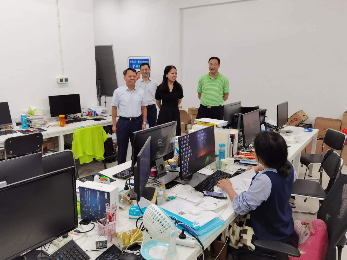 通讯系实验室与研究生亲切交谈,了解学生的学习、生活及就业情况。