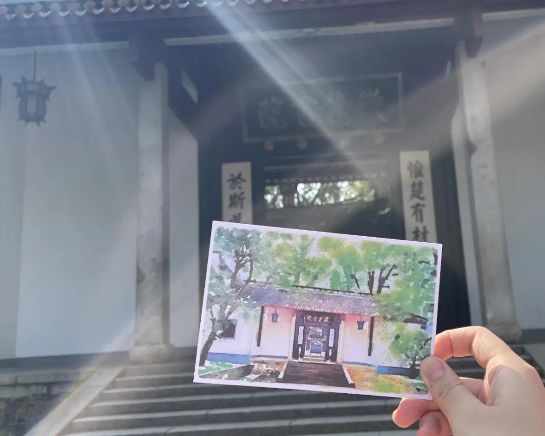 在岳麓书院,党支书金灿灿为大家分发宣传册并嘱咐大家需要讲解的重点。