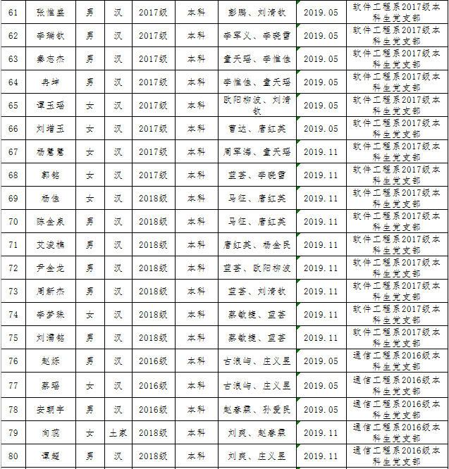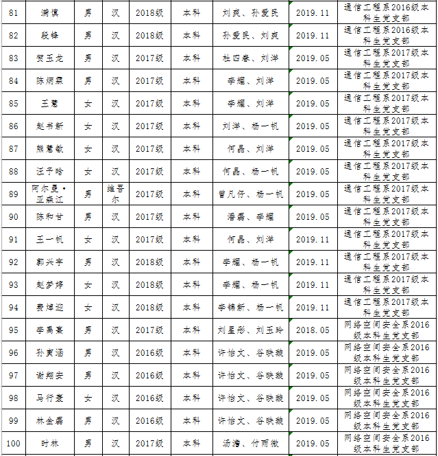 校党委2019年初划拨给第一会所 的2019年发展党员计划控制数,第一会所 2019年可发展学生党员130人。经第一会所 党委充分讨论,将各年级、各专业计划控制数下拨至各党支部,由党支部充分酝酿、讨论和支部会议通过,确定发展对象人选。经党委会讨论,确定130名同志为2019年发展对象,纳入年度党员发展计划,现具体名单公示如下: