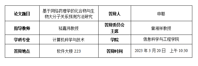 申聪博士生答辩公告