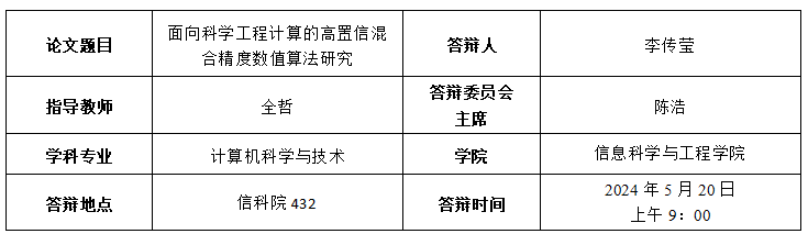[4] Chuanying Li,Xiong Xiao, Peibing Du, Hao Jiang, Roberto Barrio, Zhe Quan, Kenli Li. A high-precision dqds algorithm[C]. 2021 IEEE 23rd Int Conf on High Performance Computing \& Communications(HPCC), 2021: 633-639. (CCF C, 第一作者)