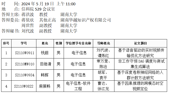 第一会所 (软件工程系)2024年5月19日硕士答辩公告(3)